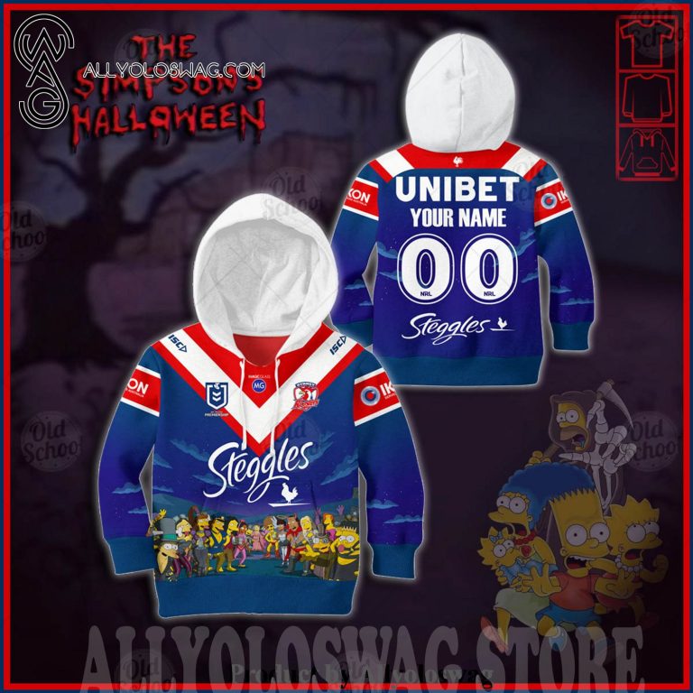 NOTE: [Top-selling] Personalized For Fans NRL Sydney Roosters x The Simpsons Halloween Jersey All Over Printed Shirt