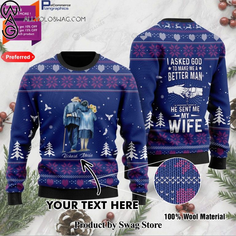 NOTE: [Top-selling] Personalized He Sent Me My Wife Custom Names For Christmas Gifts Ugly Christmas Wool Knitted Sweater