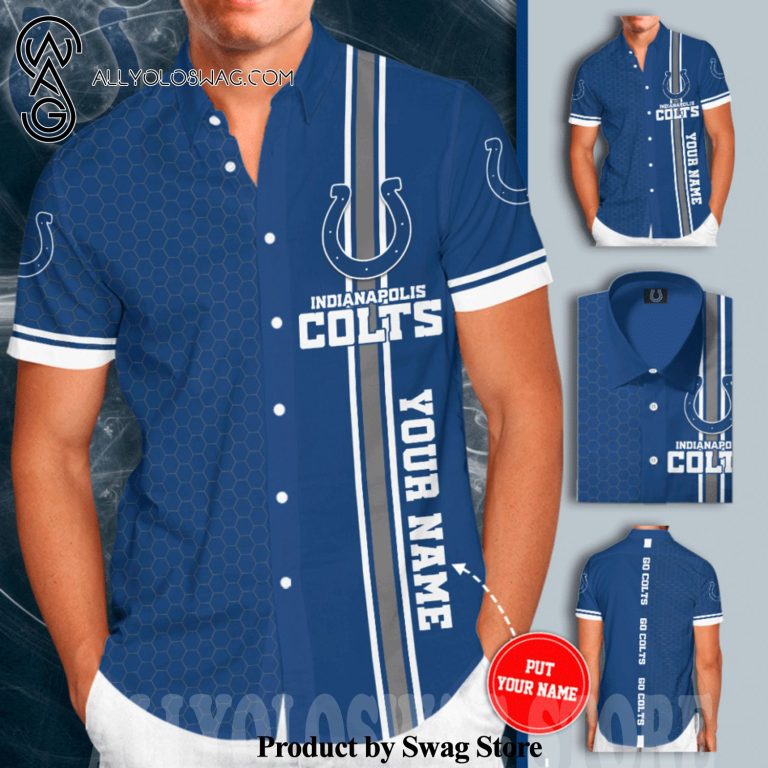 Some details about our product [Top-selling] Personalized Indianapolis Colts Go Colts All Over Print Tiling Short Sleeve Dress Shirt Hawaiian Summer Aloha Beach Shirt – Cobalt