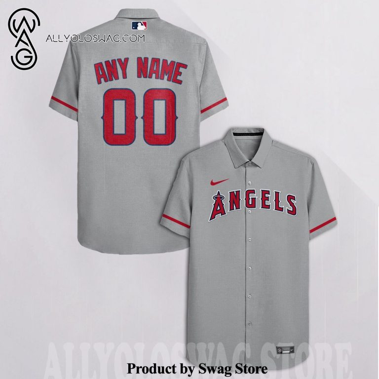 Hawaiian Shirt [Top-selling] Personalized Los Angeles Angels All Over Print Hawaiian Shirt – Gray