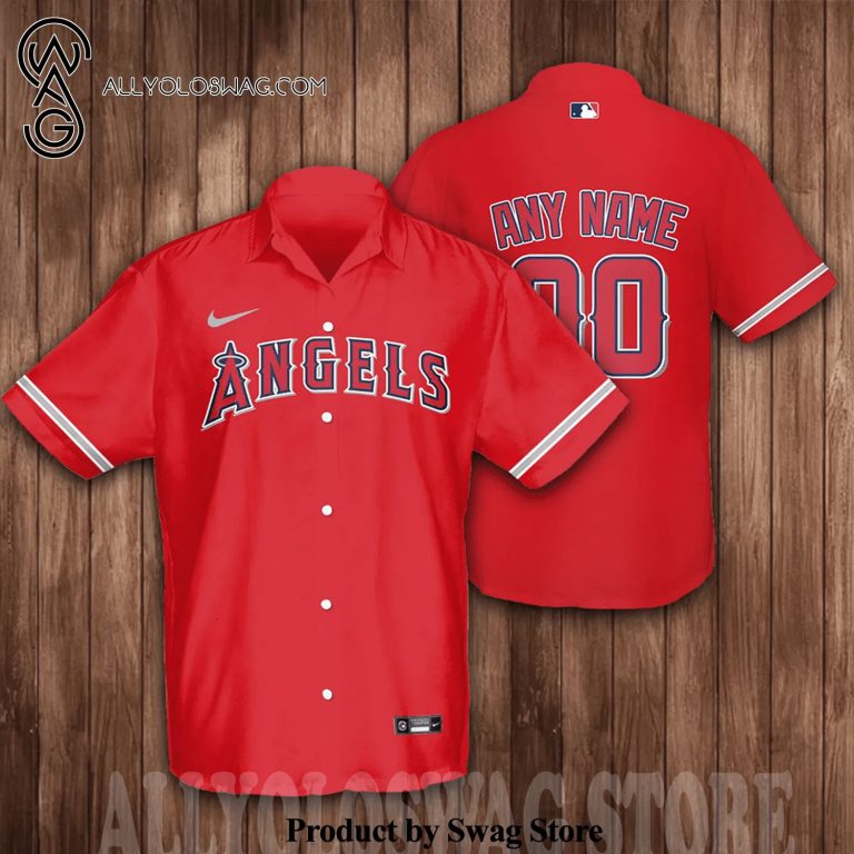 Hawaiian Shirt [Top-selling] Personalized Los Angeles Angels Baseball All Over Print 3D Hawaiian Shirt – Red