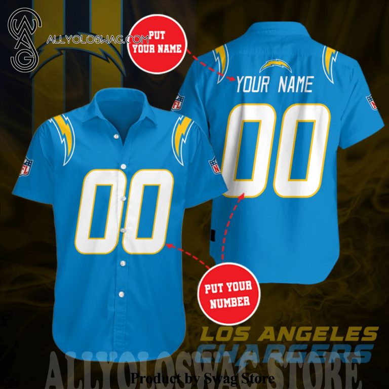 [Top-selling] Personalized Los Angeles Chargers All Over Print Short Sleeve Dress Shirt Hawaiian Summer Aloha Beach Shirt – Blue