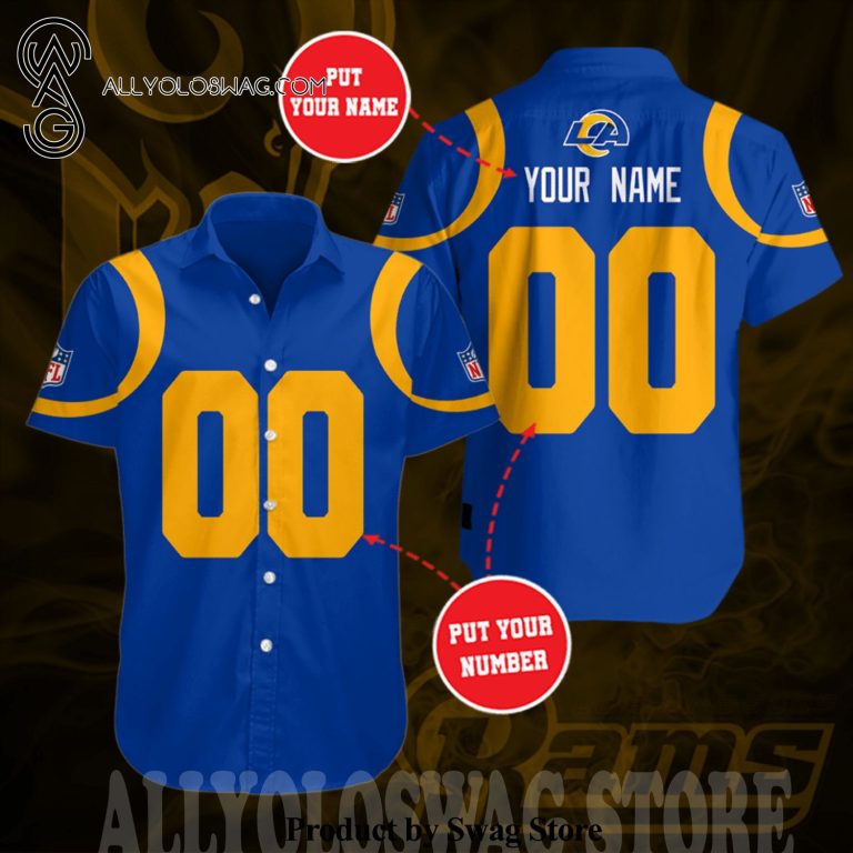 Some details about our product [Top-selling] Personalized Los Angeles Rams Football Team All Over Print Hawaiian Shirt – Blue
