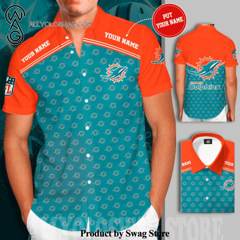 Some details about our product [Top-selling] Personalized Miami Dolphins Football Team All Over Print Hawaiian Shirt – Blue