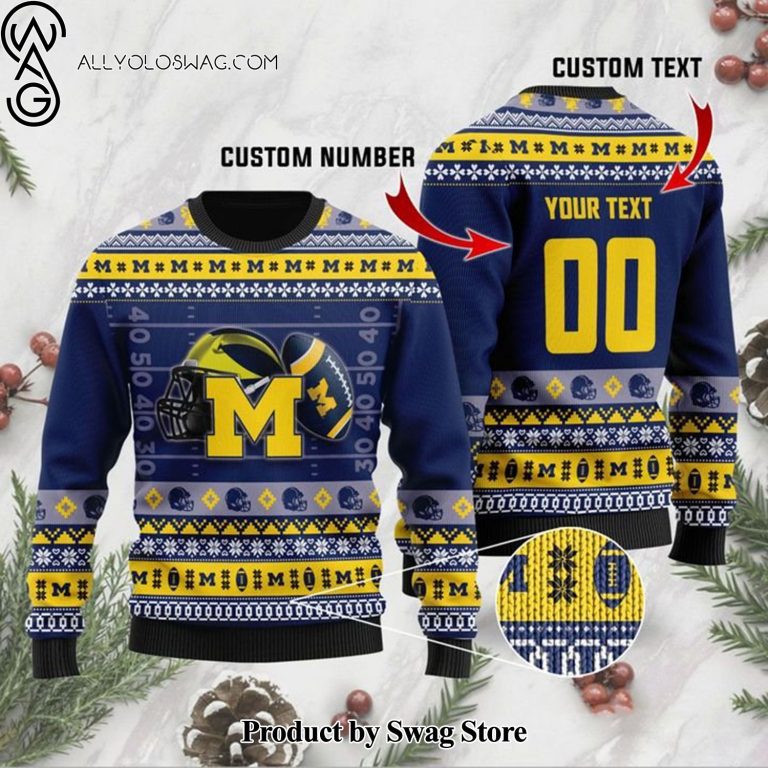 NOTE: [Top-selling] Personalized Michigan Wolverines Custom Name And Number Knitting Pattern 3D Print Ugly Sweater