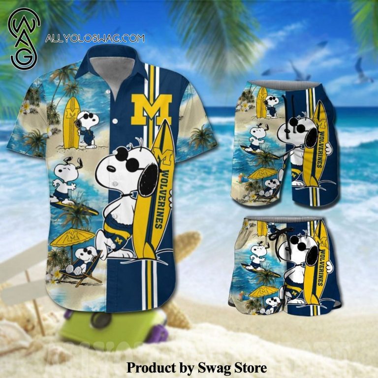 Some details about our product [Top-selling] Personalized Michigan Wolverines Snoopy Surfing On The Beach All Over Print Combo Hawaiian Shirt And Beach Shorts