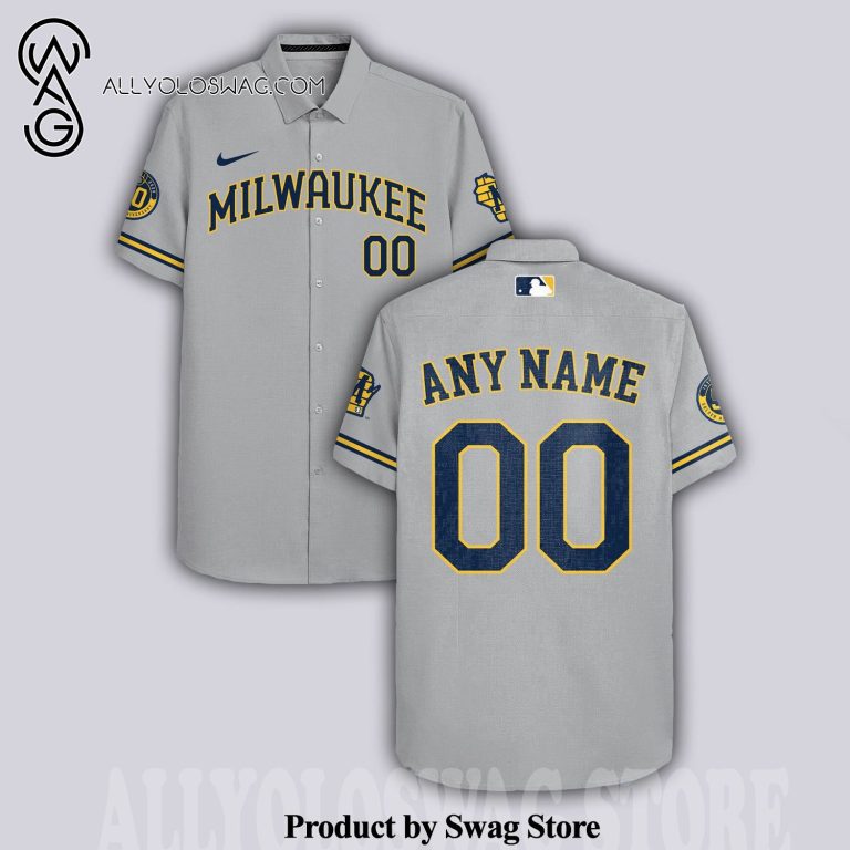 Some details about our product [Top-selling] Personalized Milwaukee Brewers All Over Print Hawaiian Shirt – Gray