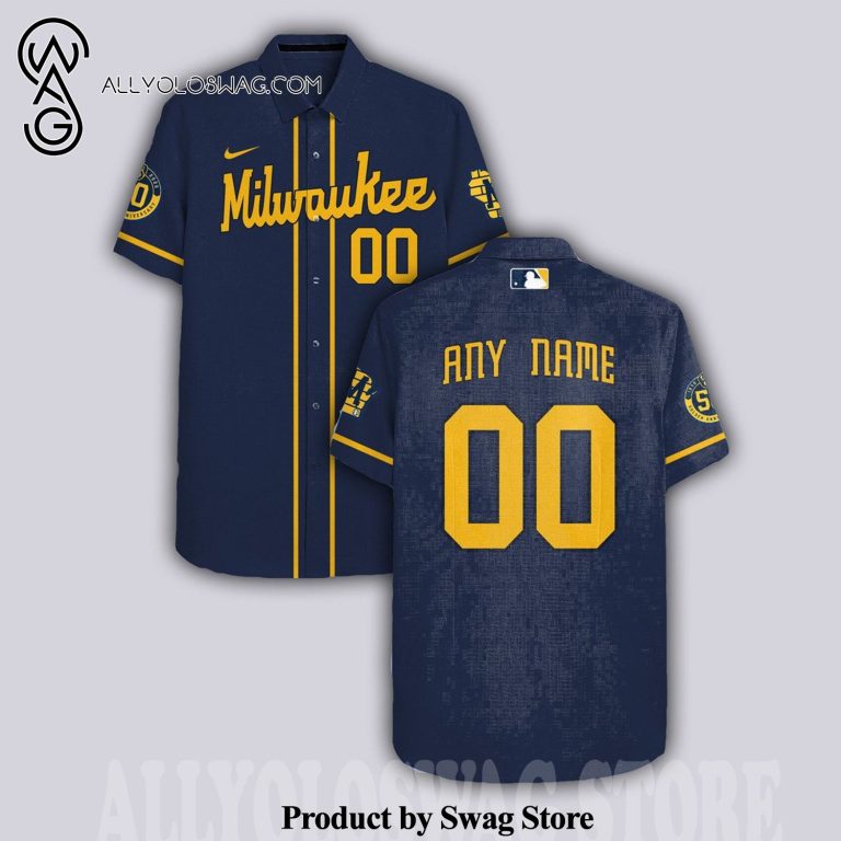 Some details about our product [Top-selling] Personalized Milwaukee Brewers All Over Print Hawaiian Shirt – Navy