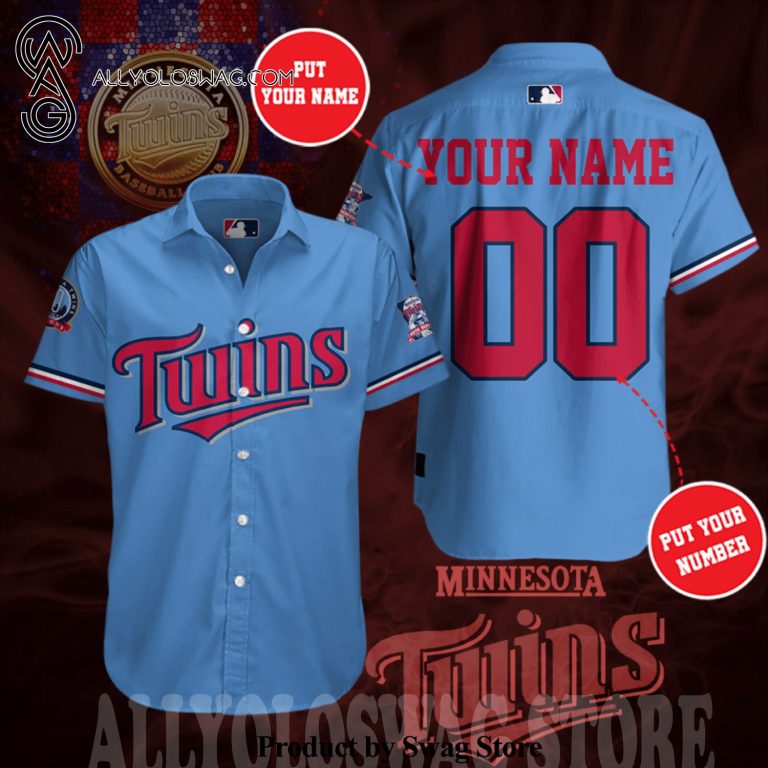Some details about our product [Top-selling] Personalized Minesota Twins All Over Print Aloha Summer Beach Hawaiian Shirt – Blue
