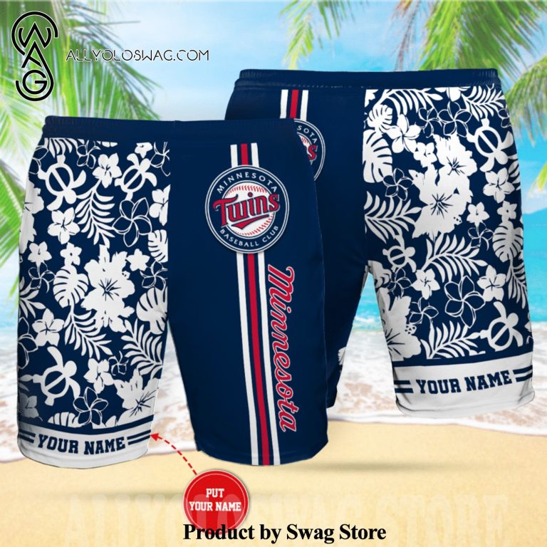 Hawaiian Shirt [Top-selling] Personalized Minnesota Twins All Over Print Flowery Aloha Summer Hawaiian Beach Shorts – Navy