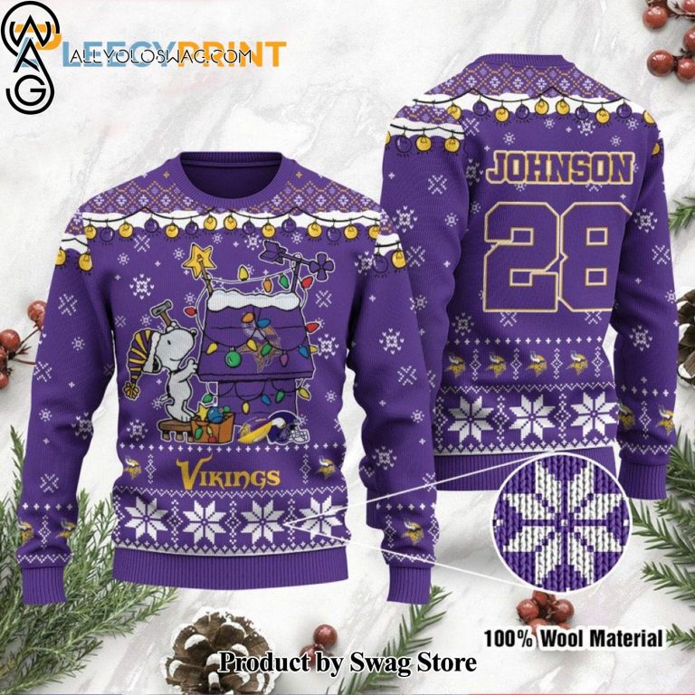 Some details about our [Top-selling] Personalized Minnesota Vikings Snoopy Custom Purple Ugly Christmas Sweater