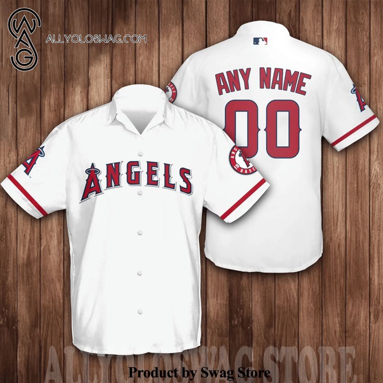 Some details about our product [Top-selling] Personalized Name And Number Los Angeles Angels Baseball All Over Print 3D Hawaiian Shirt White