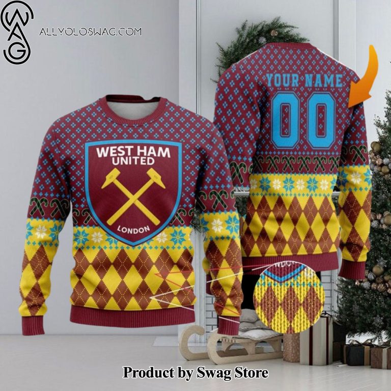 NOTE: [Top-selling] Personalized Name And Number West Ham United Christmas Holiday Gift Christmas Ugly Wool Knitted Sweater