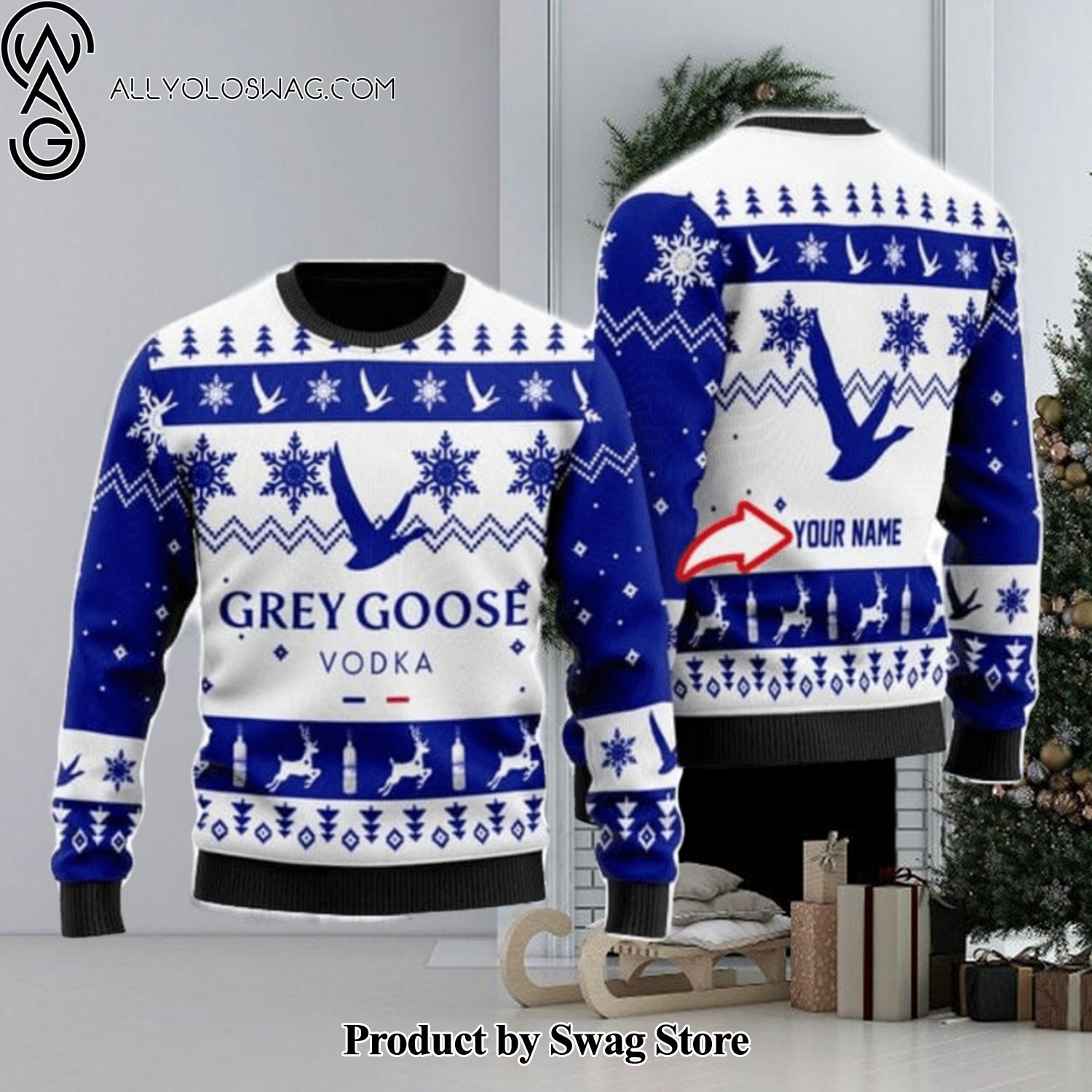[Top-selling] Personalized Name Funny Grey Goose Christmas Gift Ideas Wool Holiday Sweater