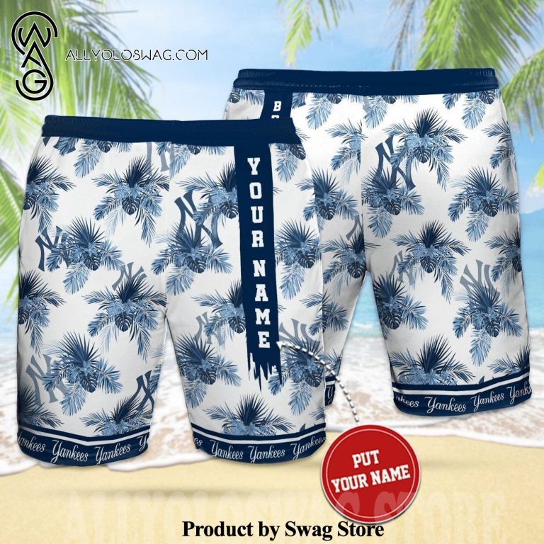 Some details about our product [Top-selling] Personalized New York Yankees All Over Print Flowery Aloha Summer Hawaiian Beach Shorts – White