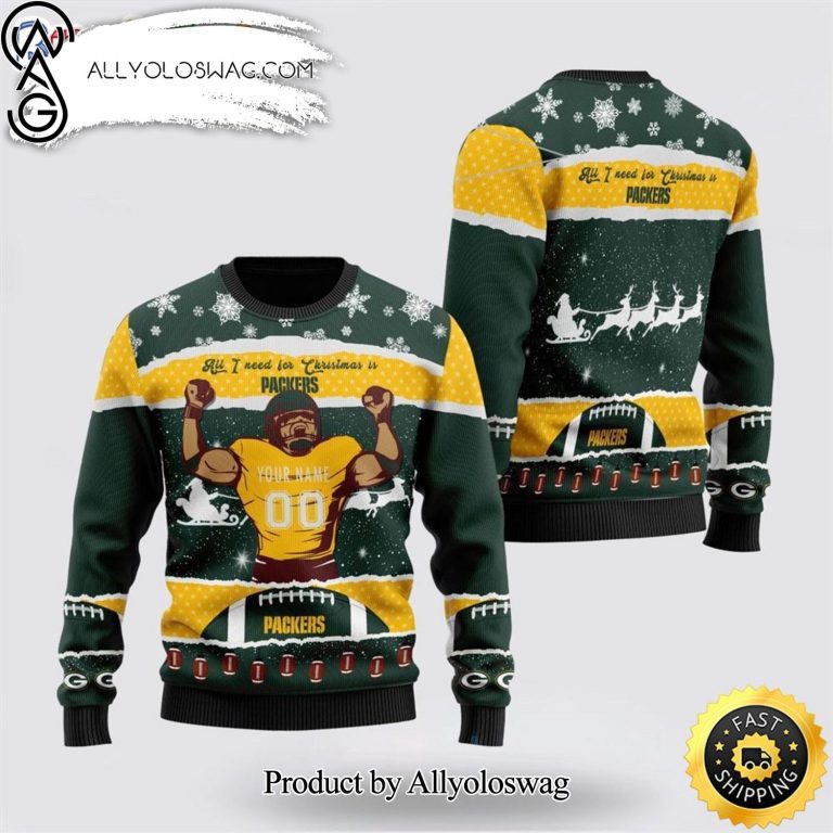NOTE: [Top-selling] Personalized NFL Green Bay Packers All I Need For Christmas Perfect Gift For Football Fans Christmas Ugly Wool Knitted Sweater