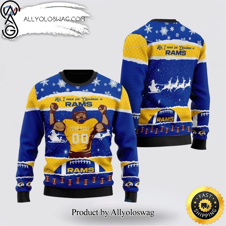 NOTE: [Top-selling] Personalized NFL Los Angeles Rams All I Need For Christmas Perfect Gift For Football Fans 3D Printed Ugly Christmas Sweater