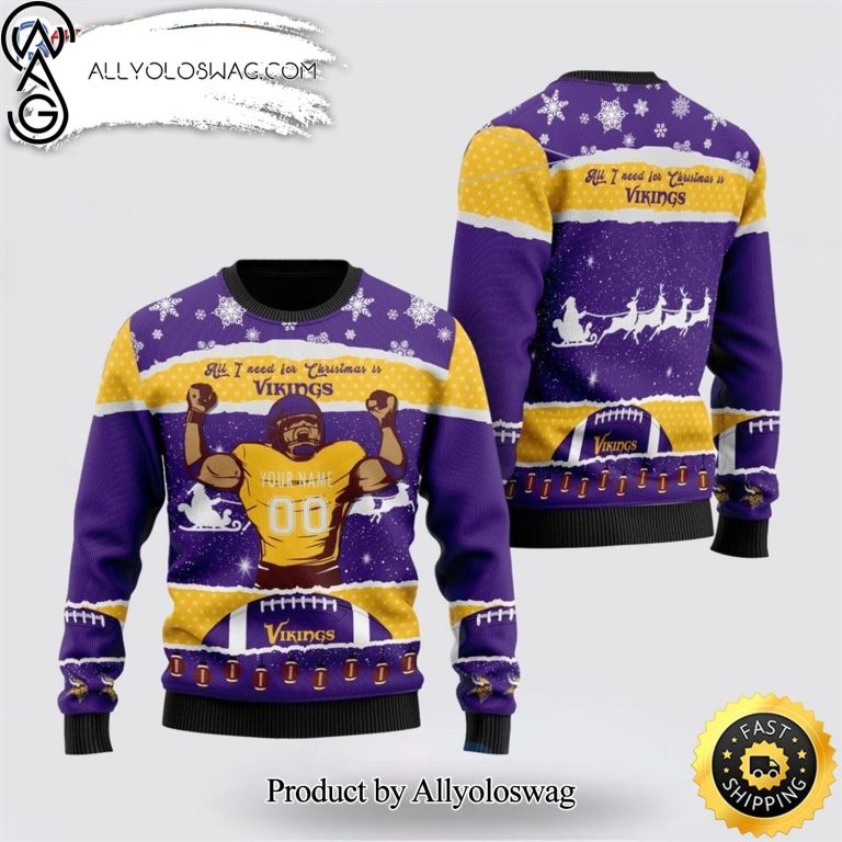 [Top-selling] Personalized NFL Minnesota Vikings All I Need For Christmas Perfect Gift For Football Fans Knitting Pattern 3D Print Ugly Sweater