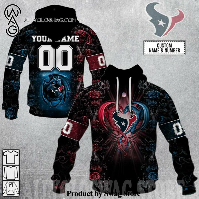 Product description information [Top-selling] Personalized NFL Rose Dragon Houston Texans Hot Fashion 3D Shirt