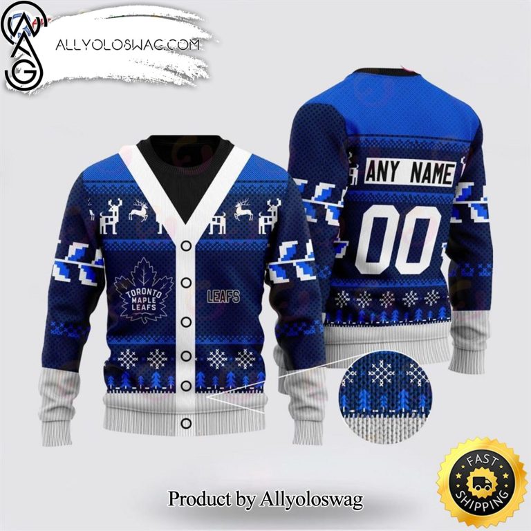 Some details about our [Top-selling] Personalized NHL Toronto Maple Leafs Elk Pattern Perfect Gift For Football Fans Ugly Xmas Wool Knitted Sweater