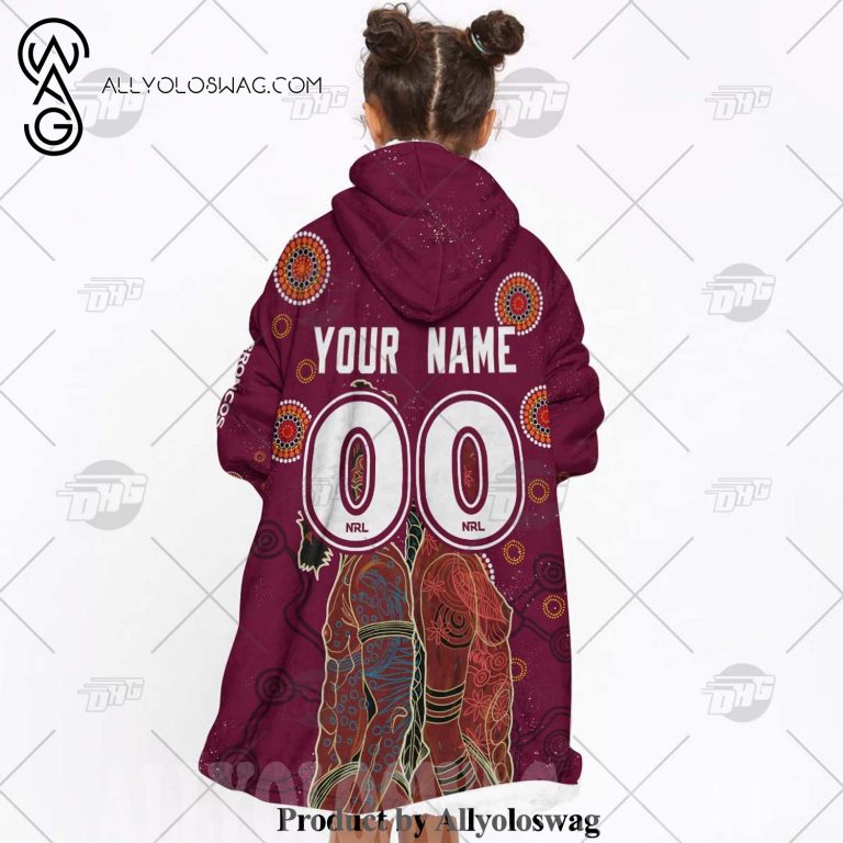 Note: [Top-selling] Personalized NRL Brisbane Broncos Proud Indigenous NAIDOC Hoodie Blanket for family adult kid