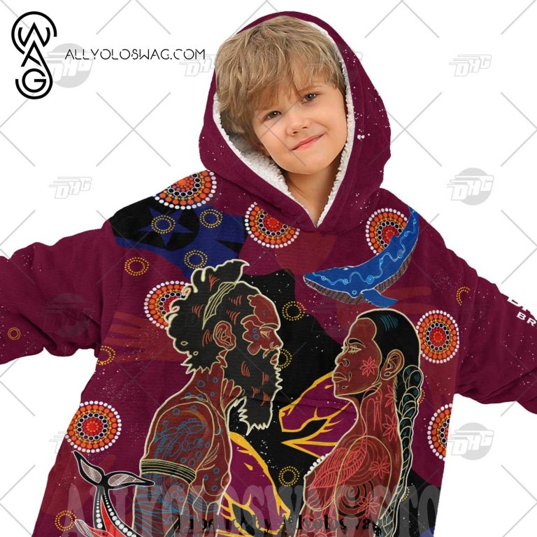 Hooded Sweater Product Description [Top-selling] Personalized NRL Brisbane Broncos Proud Indigenous NAIDOC Hoodie Blanket for family adult kid