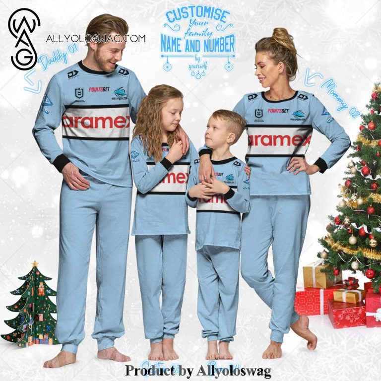 The Coziest Family Christmas Pajamas For The Whole Day [Top-selling] Personalized NRL Cronulla Sutherland Sharks Pyjamas For Family