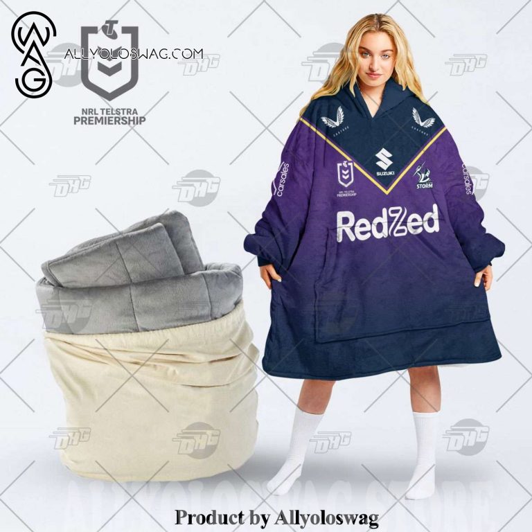 Best hoodies with blankets for hibernating in winter [Top-selling] Personalized NRL Melbourne Storm Hoodie Blanket
