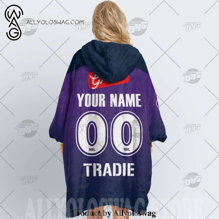 Hooded Sweater Product Description [Top-selling] Personalized NRL Melbourne Storm Hoodie Blanket