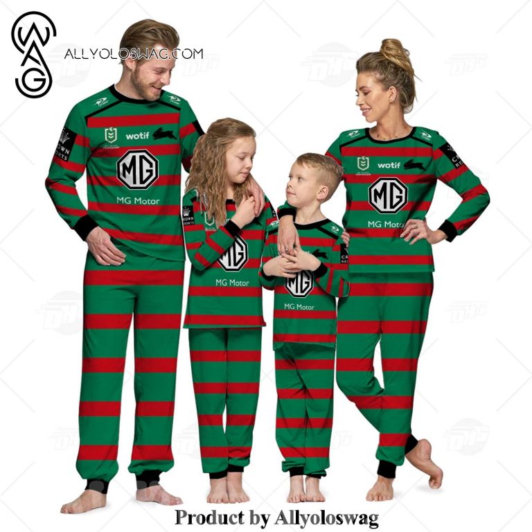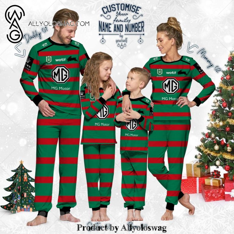 The Coziest Family Christmas Pajamas For The Whole Day [Top-selling] Personalized NRL South Sydney Rabbitohs Pyjamas For Family