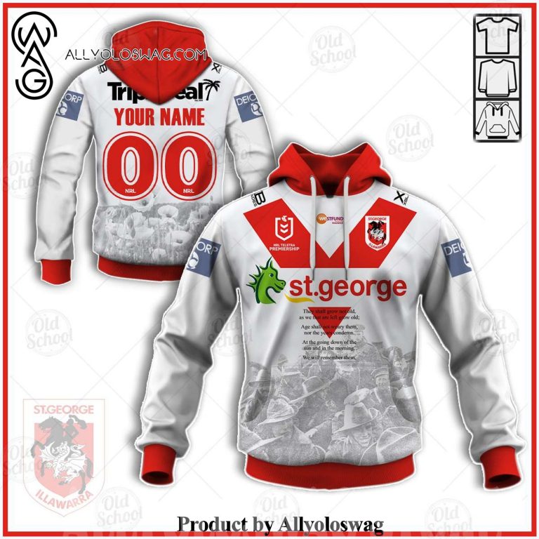 NOTE: [Top-selling] Personalized NRL St George Illawarra Dragons ANZAC Jersey For Fans All Over Printed Shirt