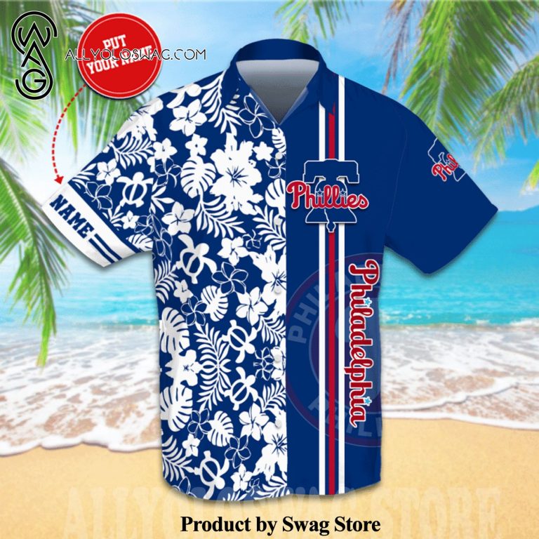 Hawaiian Shirt [Top-selling] Personalized Philadelphia Phillies All Over Print Flowery Aloha Summer Beach Hawaiian Shirt – Neon Blue