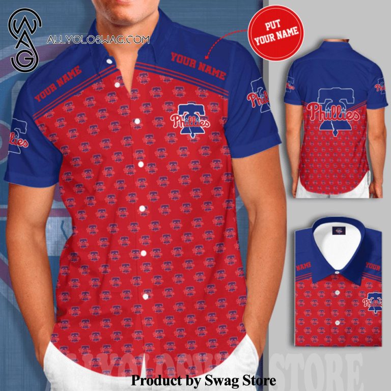 Hawaiian Shirt [Top-selling] Personalized Philadelphia Phillies Logo All Over Print Short Sleeve Dress Shirt Hawaiian Summer Aloha Beach Shirt – Red Blue