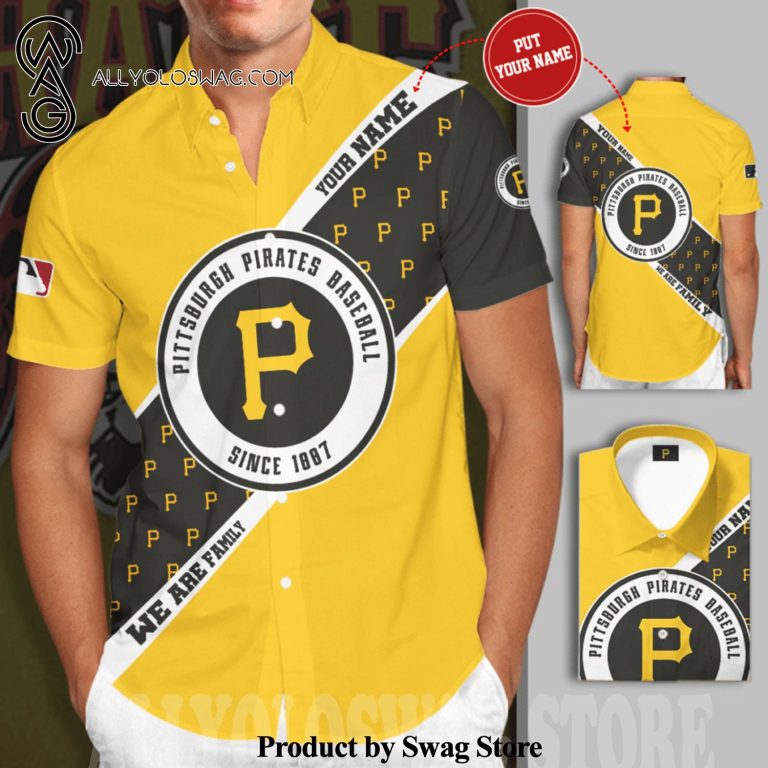 Some details about our product [Top-selling] Personalized Pittsburgh Pirates Since 1887 All Over Print Short Sleeve Dress Shirt Hawaiian Summer Aloha Beach Shirt – Yellow Gray