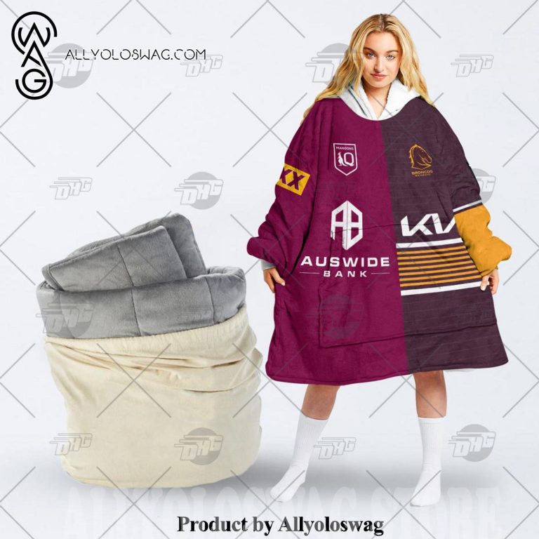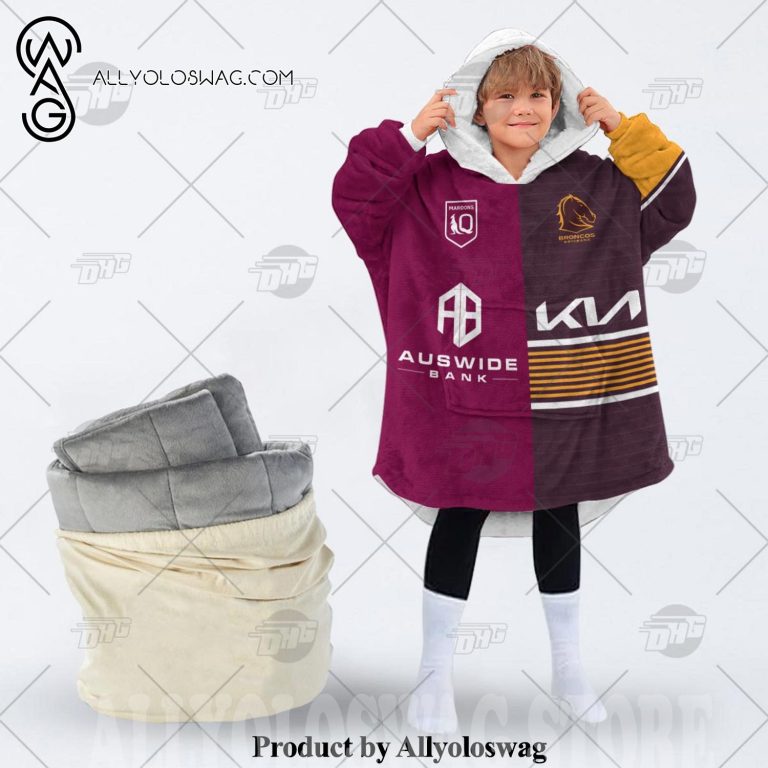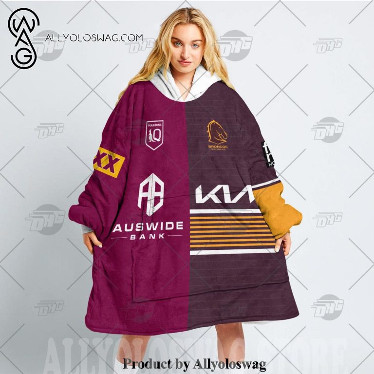 Best hoodies with blankets for hibernating in winter [Top-selling] Personalized QLD Maroons To NRL Brisbane Broncos Half and Half Split Jersey Hoodie Blanket