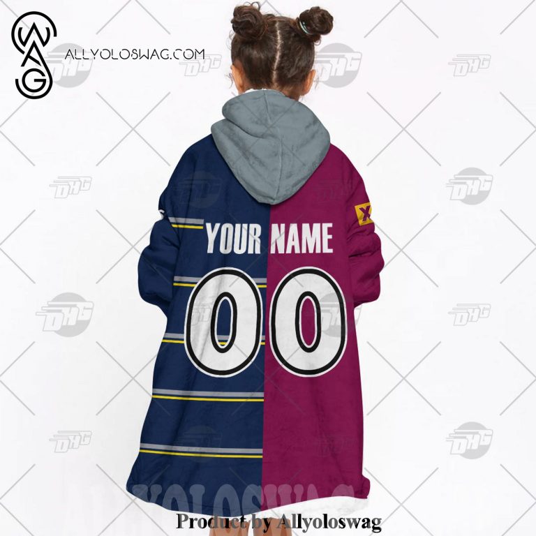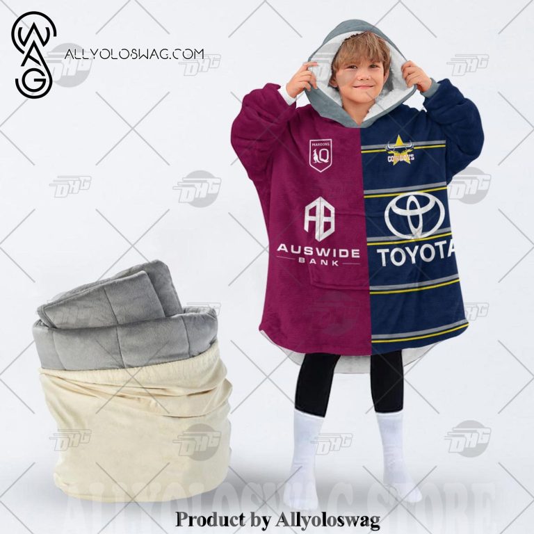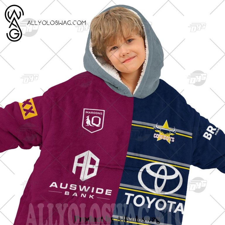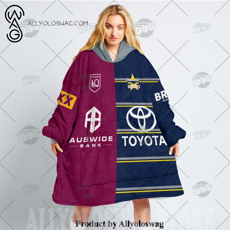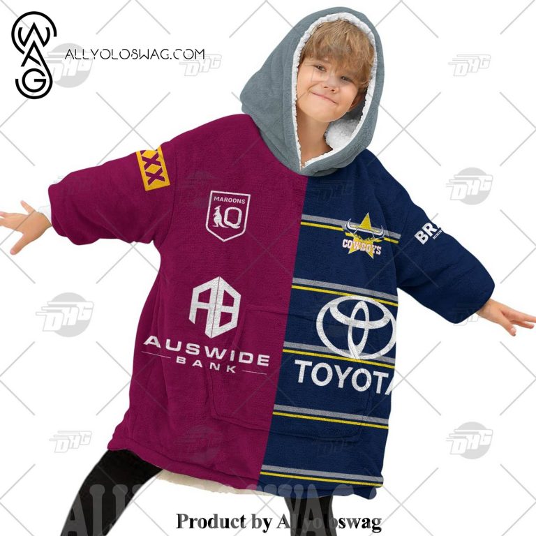 Hooded Sweater Product Description [Top-selling] Personalized QLD Maroons To NRL North Queensland Cowboys Half and Half Split Jersey Hoodie Blanket