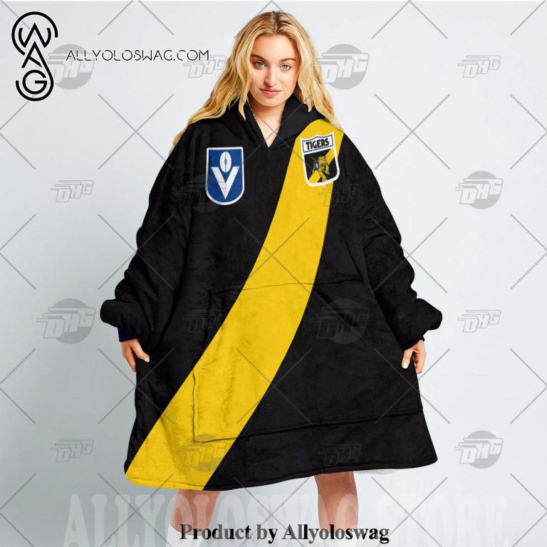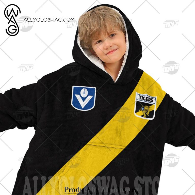 Hooded Sweater Product Description [Top-selling] Personalized Richmond Football Club Vintage Retro AFL Guernsey 90s Hoodie Blanket