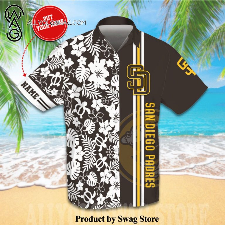 Some details about our product [Top-selling] Personalized San Diego Padres All Over Print Flowery Aloha Summer Beach Hawaiian Shirt – Brown