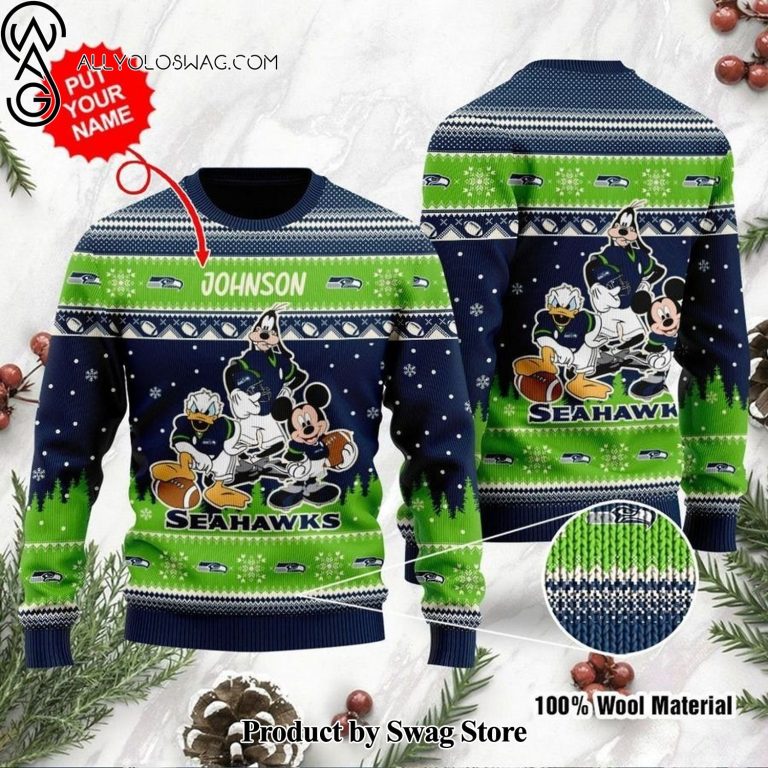 NOTE: [Top-selling] Personalized Seattle Seahawks Mickey Donald Goofy Disney Ugly Christmas Sweater