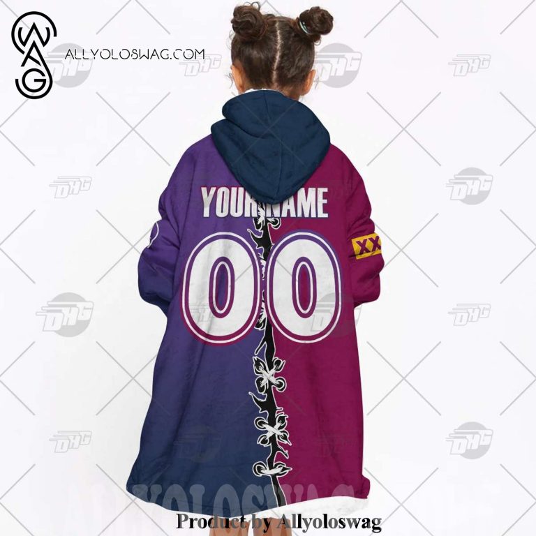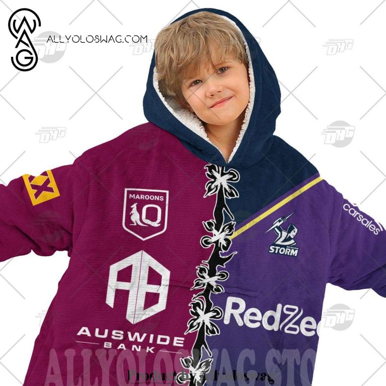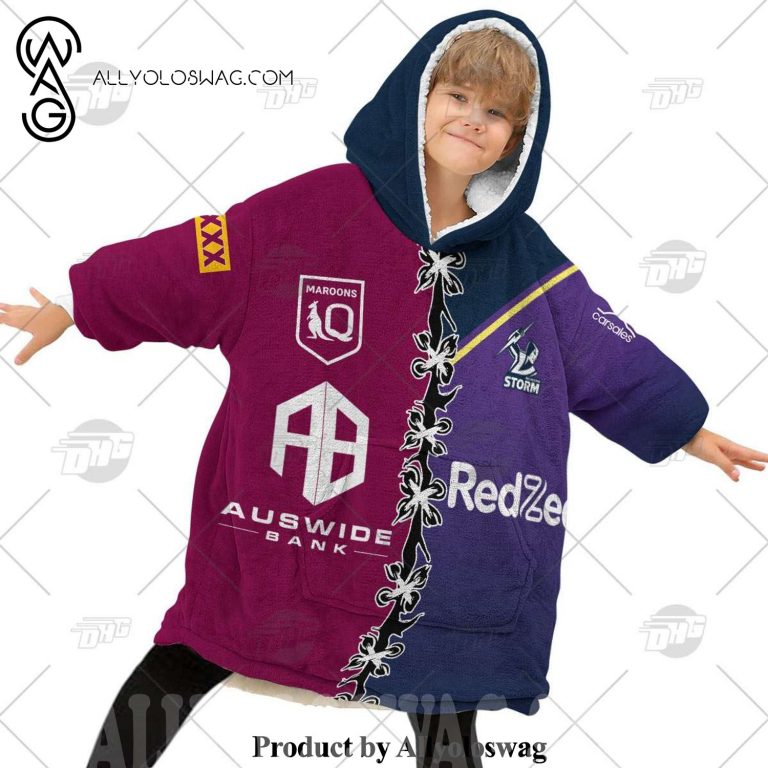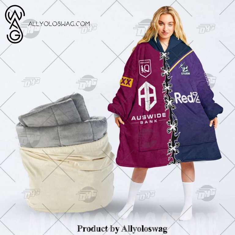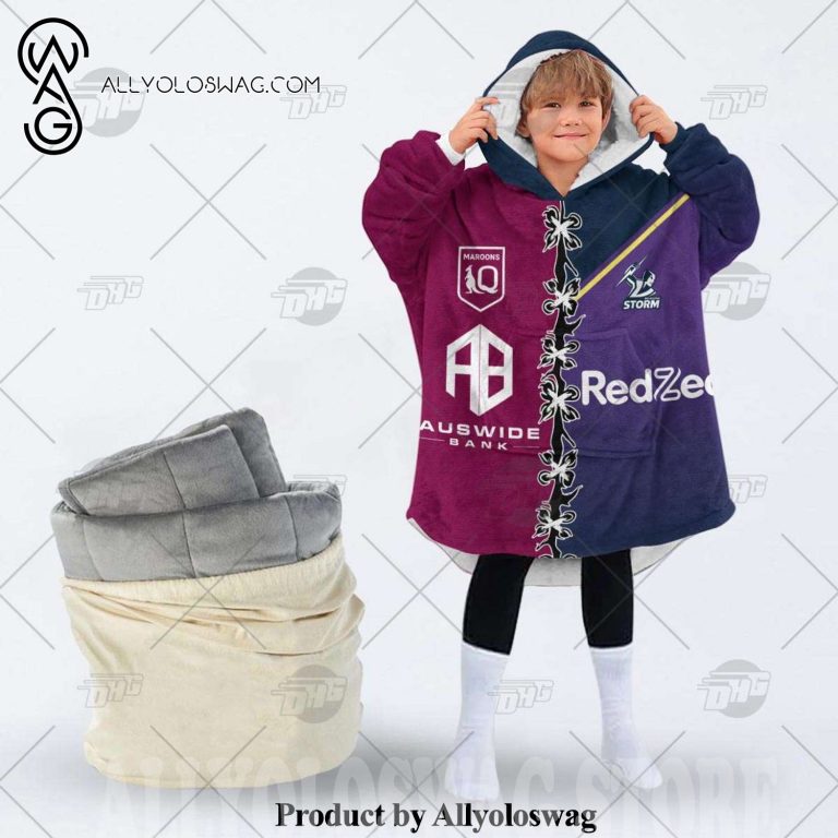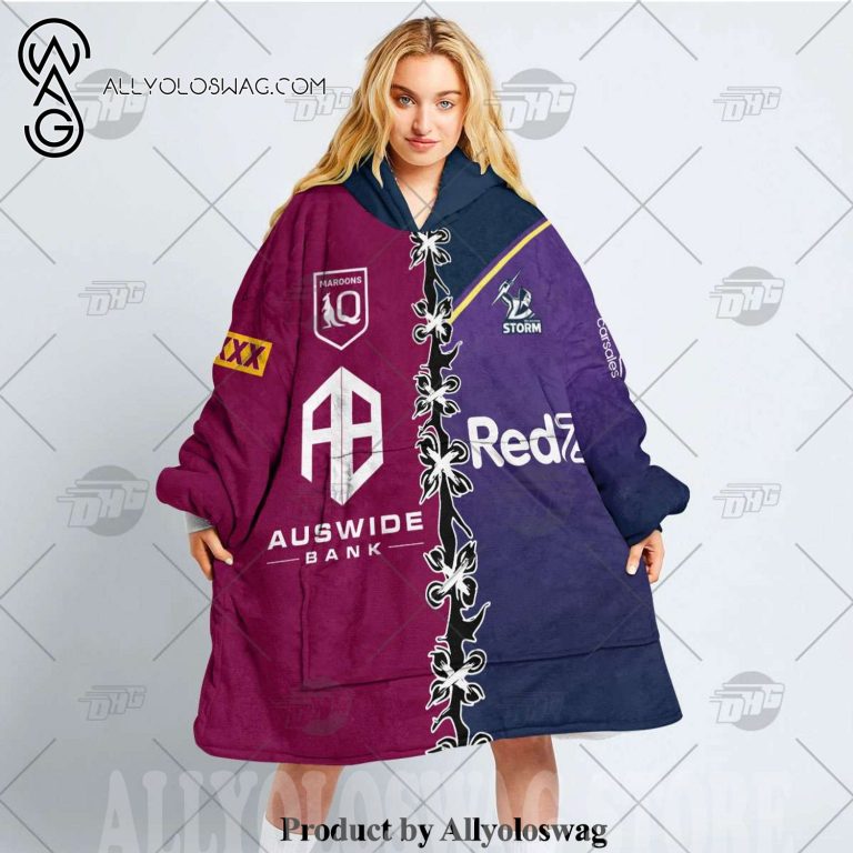 Hooded Sweater Product Description [Top-selling] Personalized SOO QLD Maroons To NRL Melbourne Storm Half and Half Split Hoodie Blanket