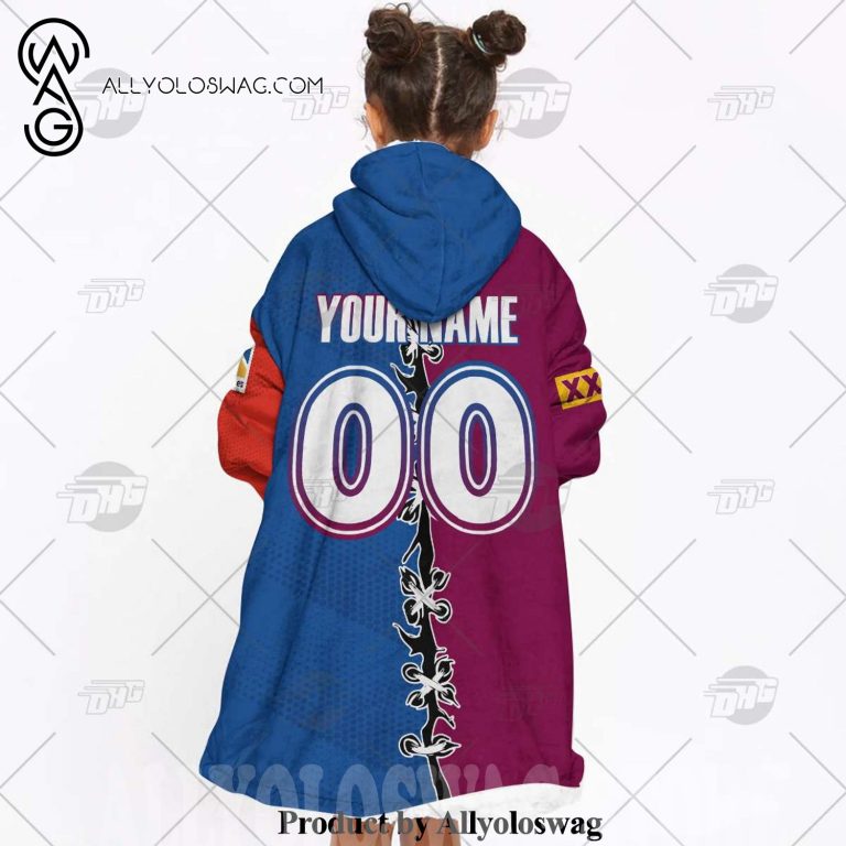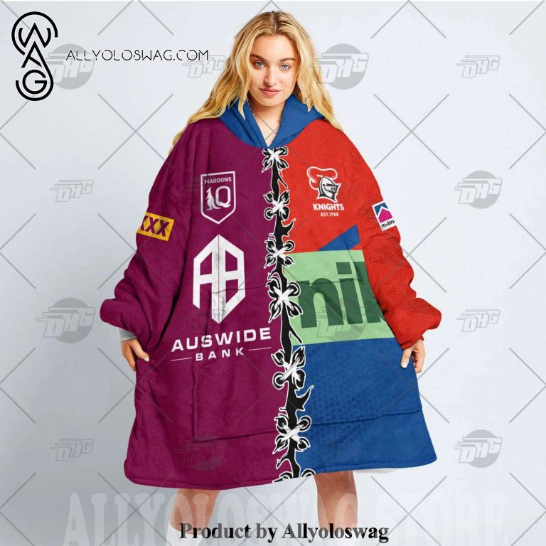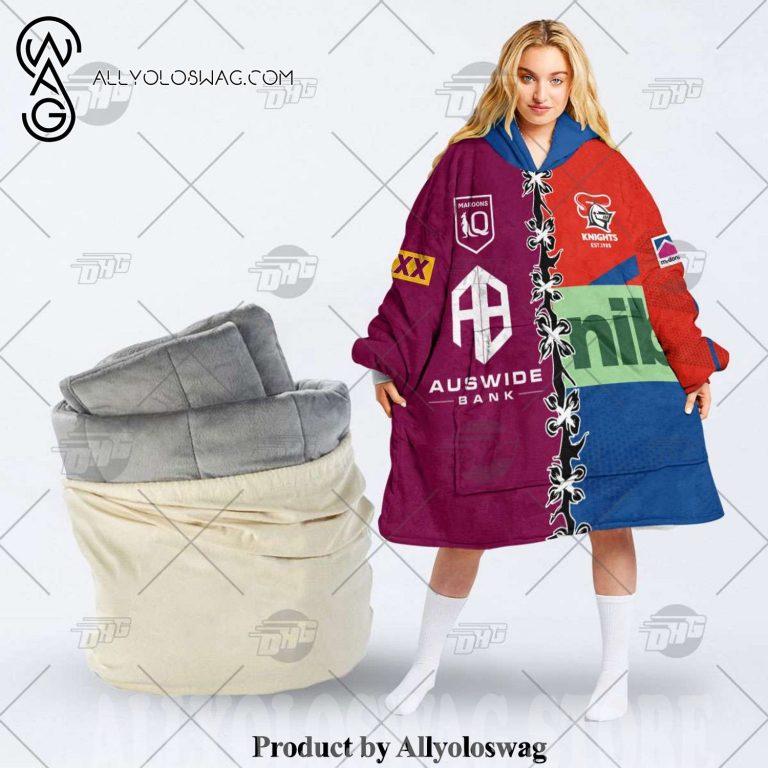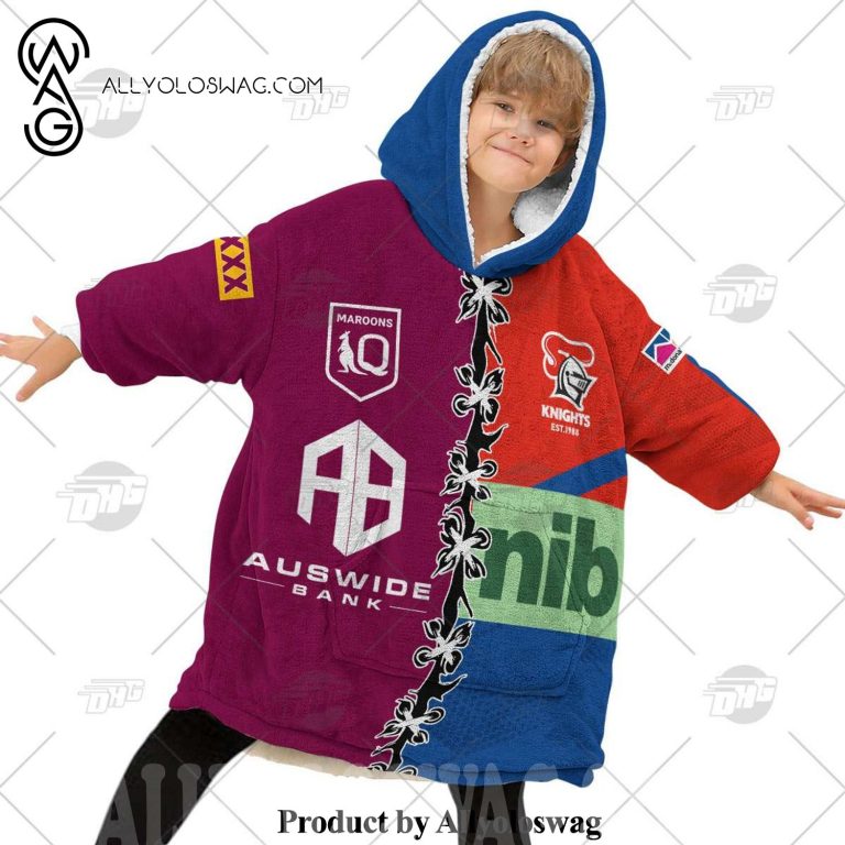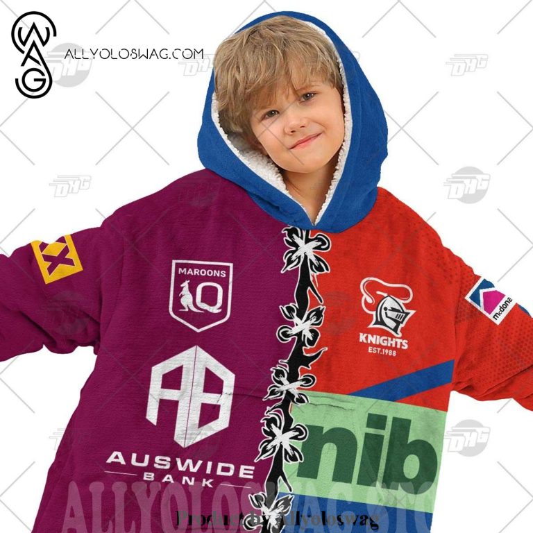 Hooded Sweater Product Description [Top-selling] Personalized SOO QLD Maroons To NRL Newcastle Knights Half and Half Split Hoodie Blanket