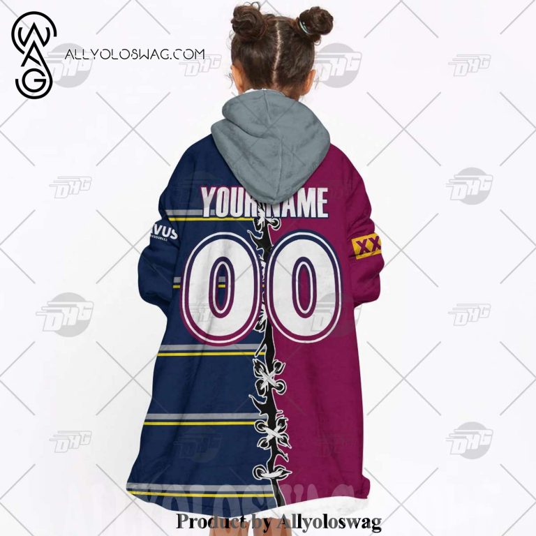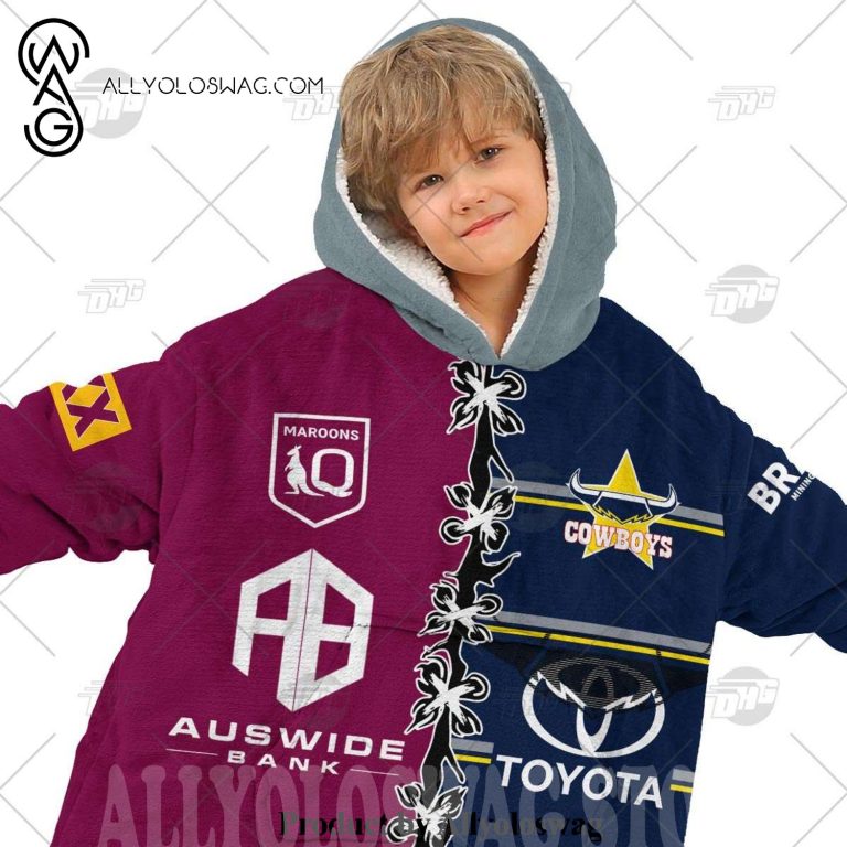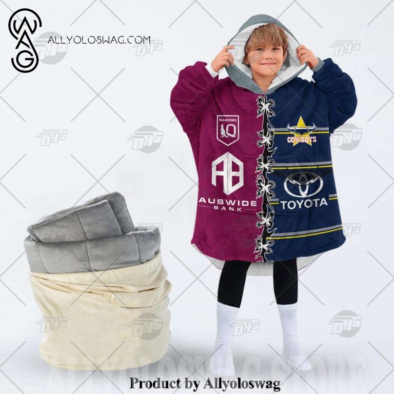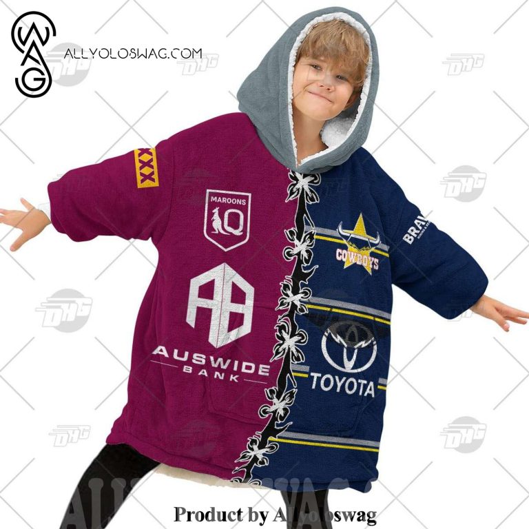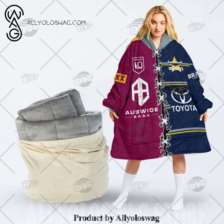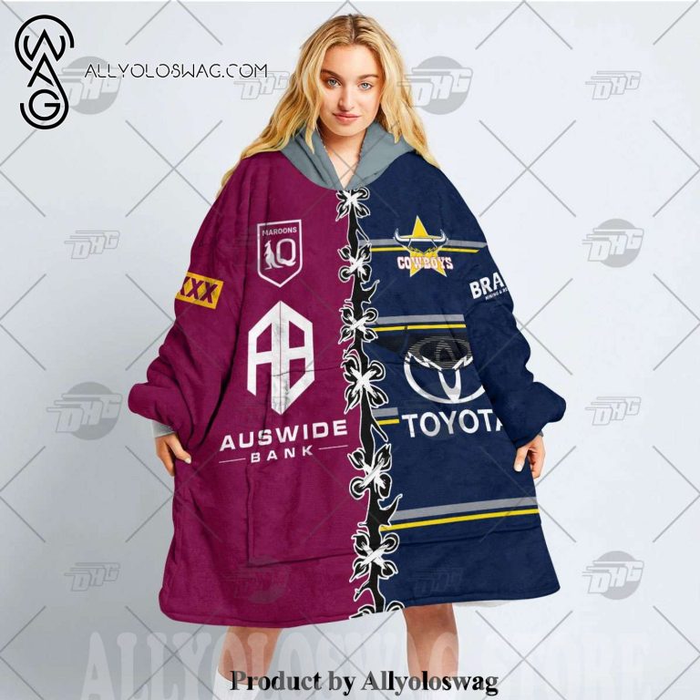 Hooded Sweater Product Description [Top-selling] Personalized SOO QLD Maroons To NRL North Queensland Cowboys Half and Half Split Hoodie Blanket