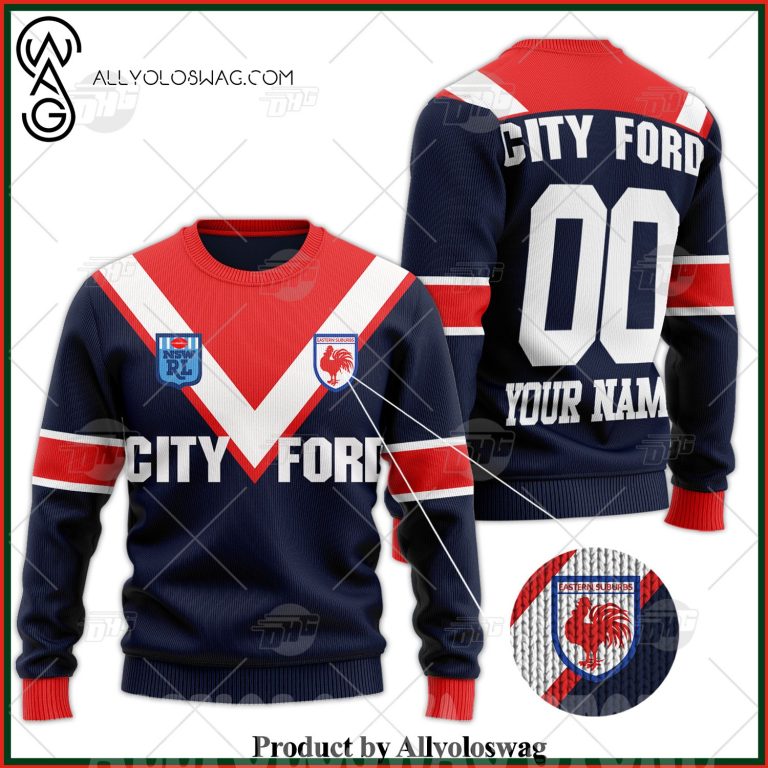 NOTE: [Top-selling] Personalized Sydney Rooster NRL 1980s Home Ugly Christmas Sweater