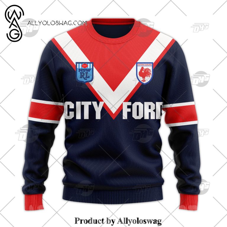Some details about our [Top-selling] Personalized Sydney Rooster NRL 1980s Home Ugly Christmas Sweater