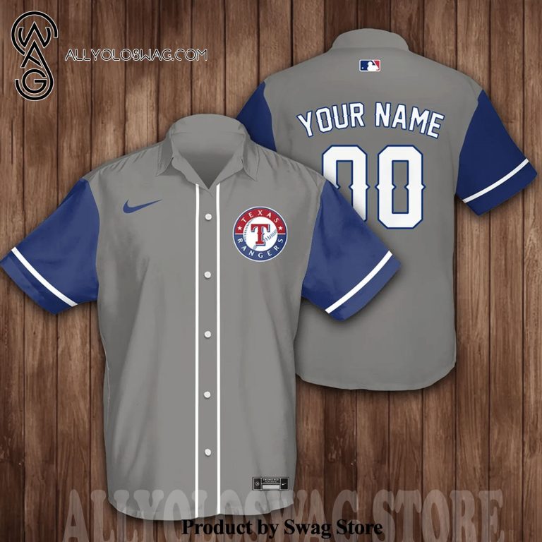 [Top-selling] Personalized Texas Rangers Baseball All Over Print Hawaiian Shirt – Grey Blue