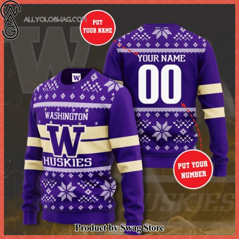 NOTE: [Top-selling] Personalized Washington Huskies Custom Name And Number Ugly Christmas Sweater