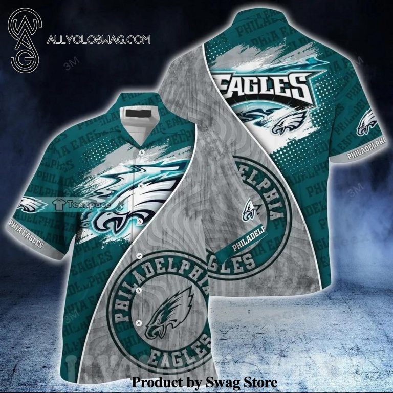 [Top-selling] Philadelphia Eagles Grey And Kelly Green Summer Set Hawaiian Shirt was hand-tailored in the early days of fashion. This might happen in the comfort of one’s own home or at a custom tailor’s business. These stores immediately sprang up all across the islands, especially in plantation towns and Honolulu. Newly accessible fabrics from throughout the world were sold at dry goods stores, including printed silk from Japan, raw silk, batik, and rayon from the United States mainland, and cotton cloth for kimonos and yukatas.Hawaiian history had long been shaped by Asian immigrants, and apparel designs reflected this. Short- and long-sleeved shirts, as well as women’s skirts, were created using pre-printed textiles from China and Japan and were based on Asian clothing styles. These bright blouses and dresses were the forerunners of today’s Aloha attire. On the islands, we say “ono” to describe something that is pleasantly cool.