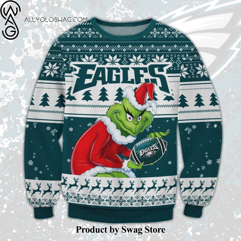 NOTE: [Top-selling] Philadelphia Eagles Grinch Christmas Ugly Wool Knitted Sweater