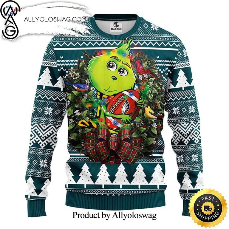 Some details about our [Top-selling] Philadelphia Eagles Grinch Hug Xmas Day Show Your Team Spirit Sweater