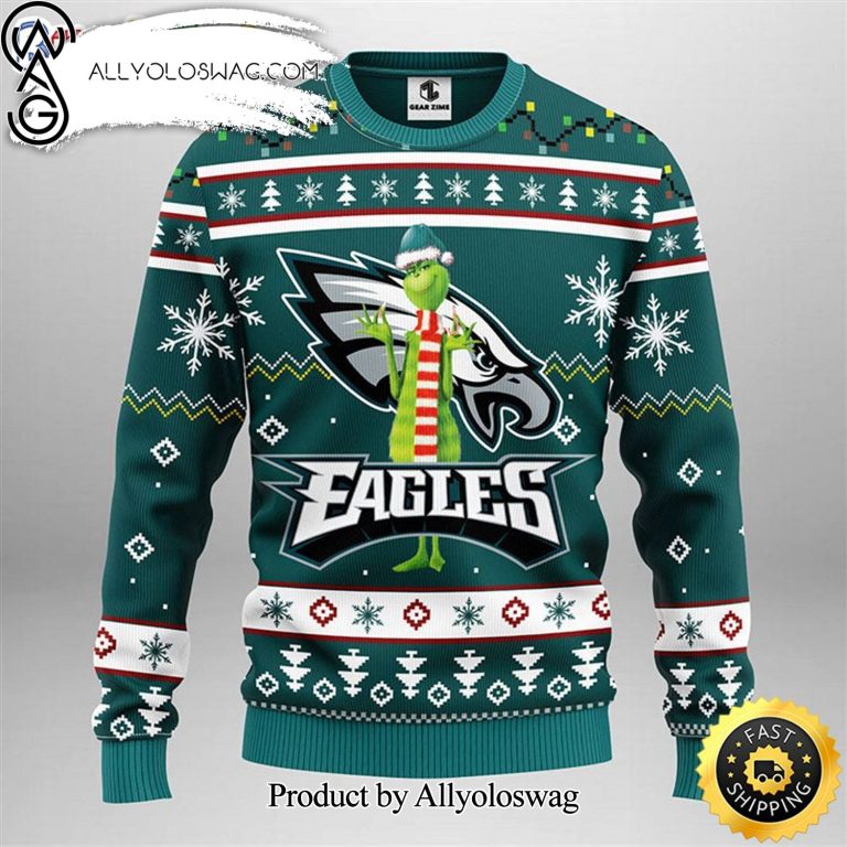 NOTE: [Top-selling] Philadelphia Eagles Grinch Show Your Team Spirit Ugly Christmas Wool Knitted Sweater